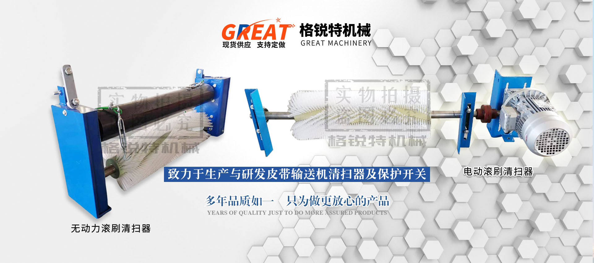 衡水格銳特機(jī)械科技有限公司常年致力于生產(chǎn)與研發(fā)皮帶輸送機(jī)清掃器及保護(hù)開關(guān),其中主營聚氨酯清掃器,合金清掃器,電動滾刷清掃器,機(jī)械式滾刷清掃器,緩沖床,緩沖條,雙向拉繩開關(guān),兩級跑偏開關(guān),打滑檢測器,料流檢測器等保護(hù)開關(guān),常年銷往各大水泥廠,煤礦廠,電廠,輸送機(jī)廠家,質(zhì)量優(yōu)越,價格實(shí)惠,望各大領(lǐng)導(dǎo)及同行來廠參觀指導(dǎo),期待您的光臨?。。?/p>